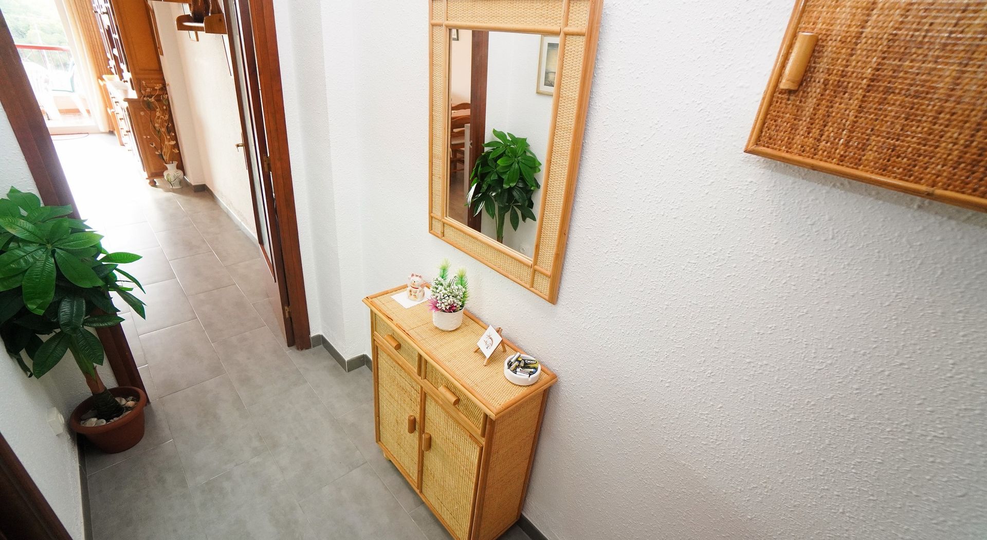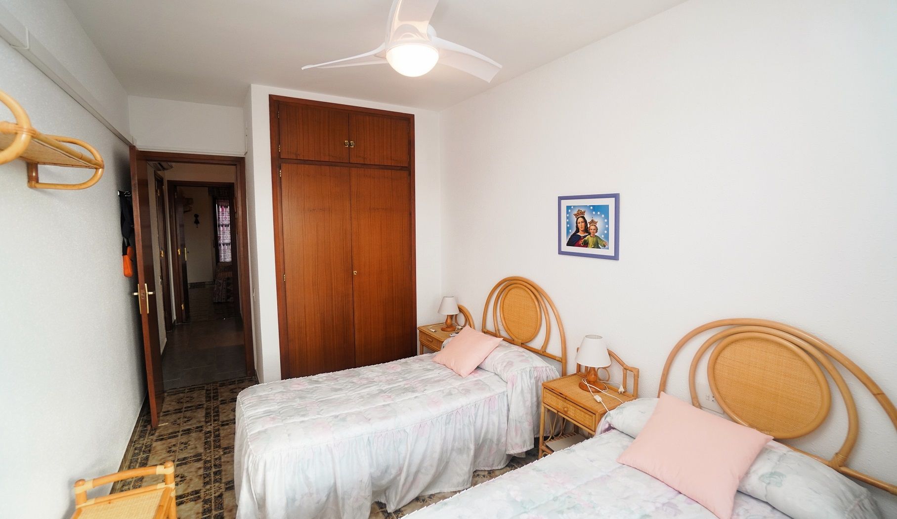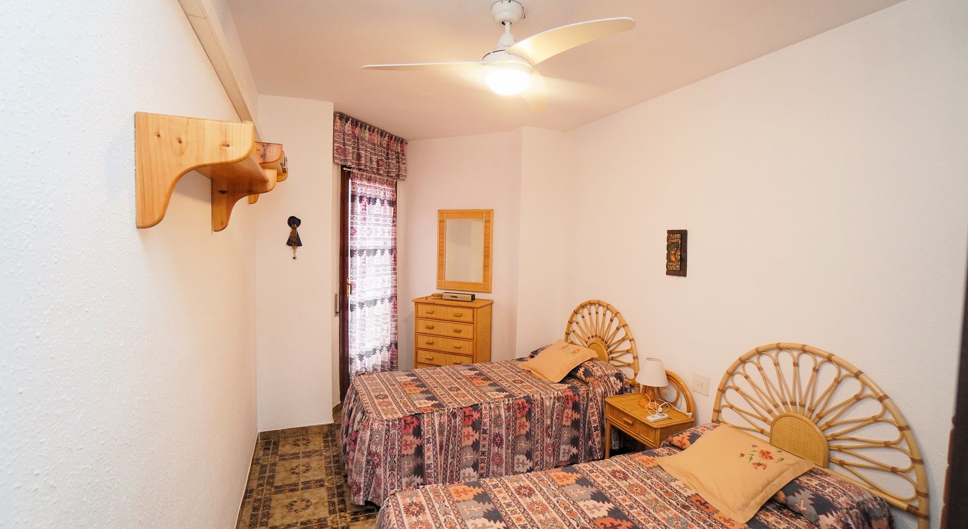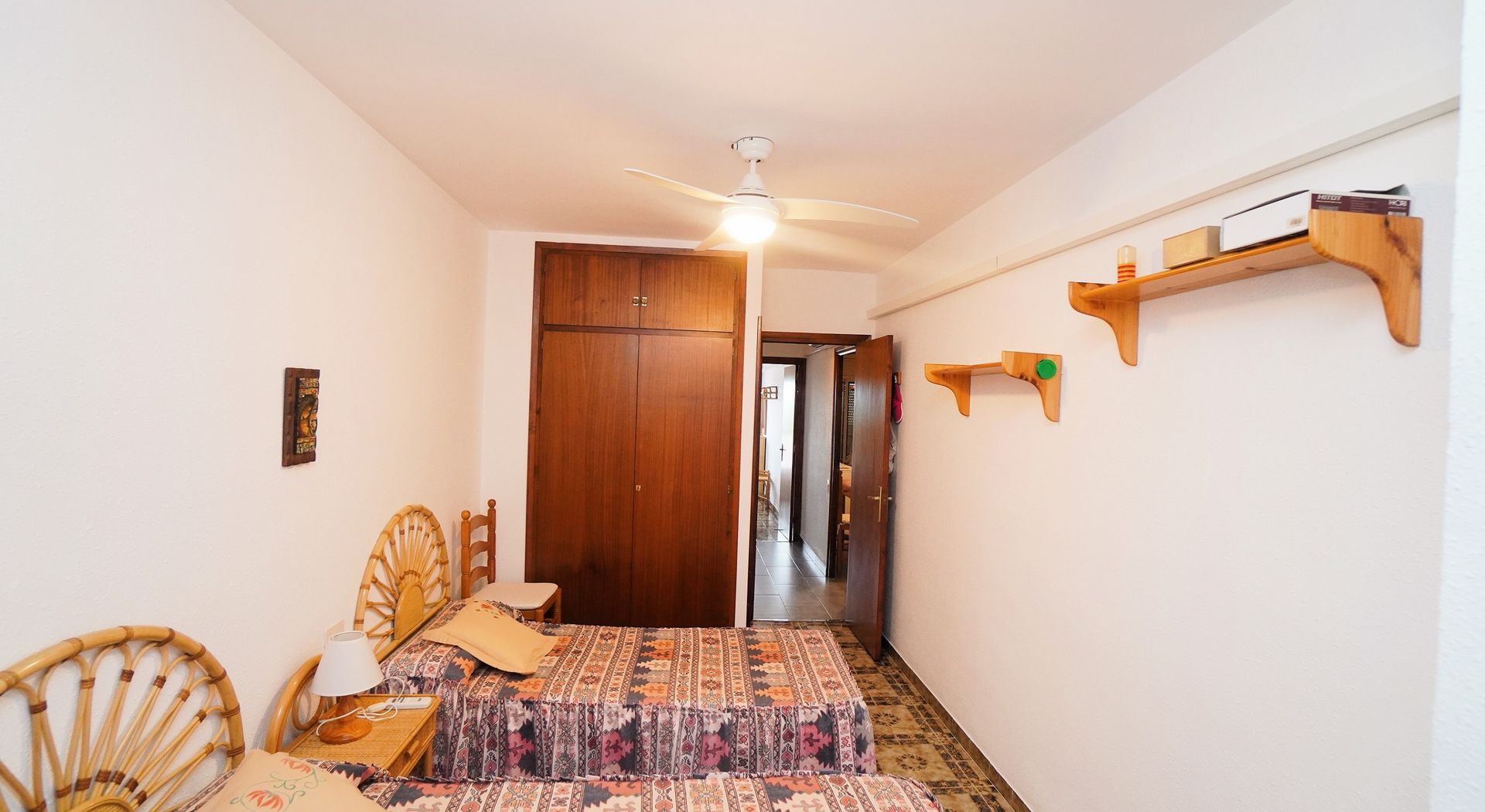 Orientación Sur y con 69 m2 que se distribuyen de la siguiente manera: recibidor, salón comedor, cocina independiente, dos habitaciones dobles con armarios empotrados y terraza a la que se accede desde el salón y desde la habitación principal. El edificio está en perfecto estado de conservación y en su amplia zona comunitaria se puede aparcar. Dispone de zona de duchas para cuando vengas de la playa. La finca no tiene ascensor.