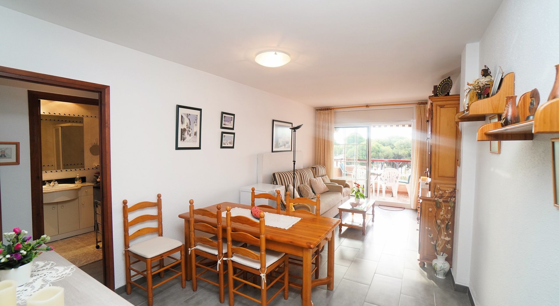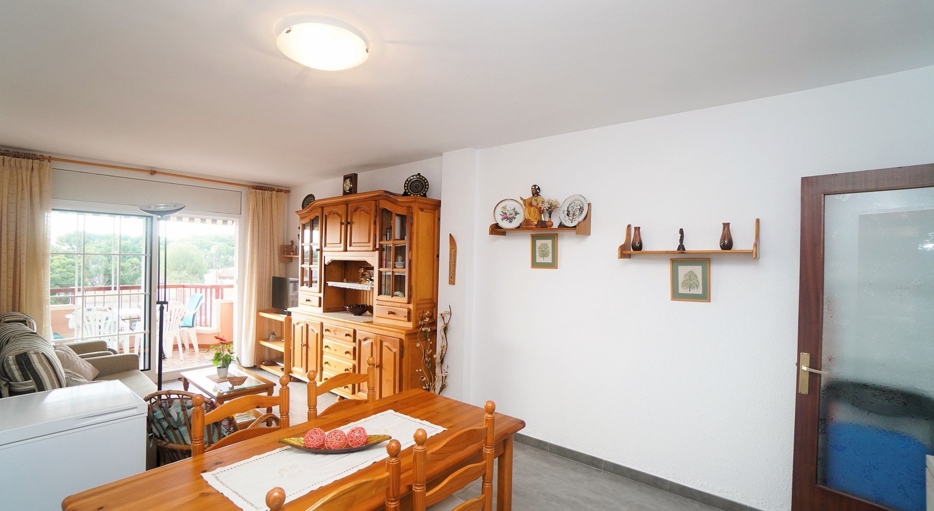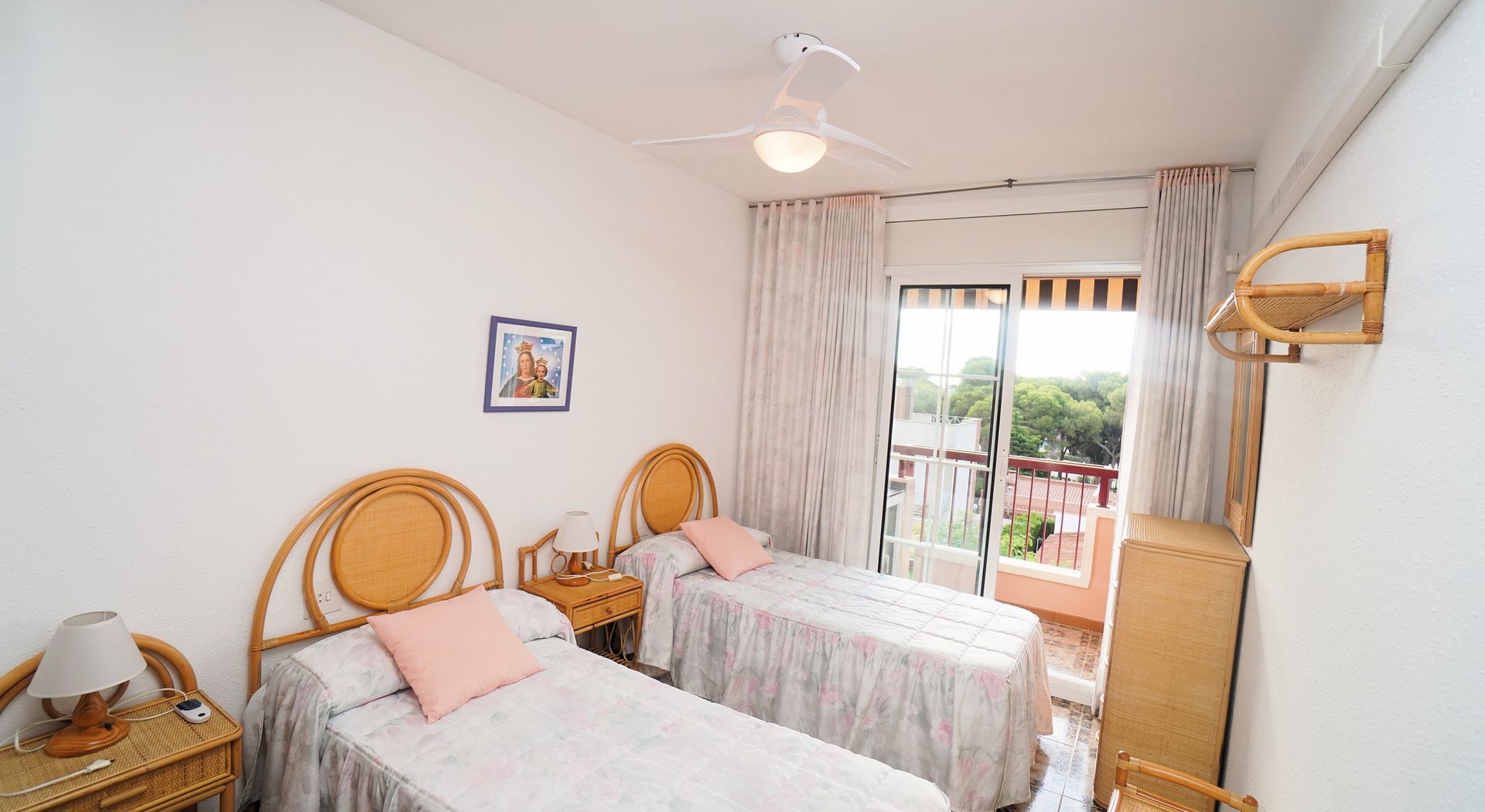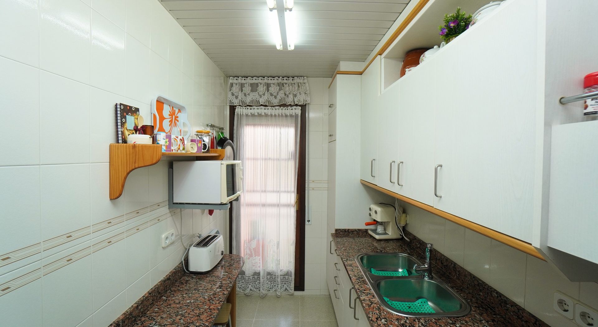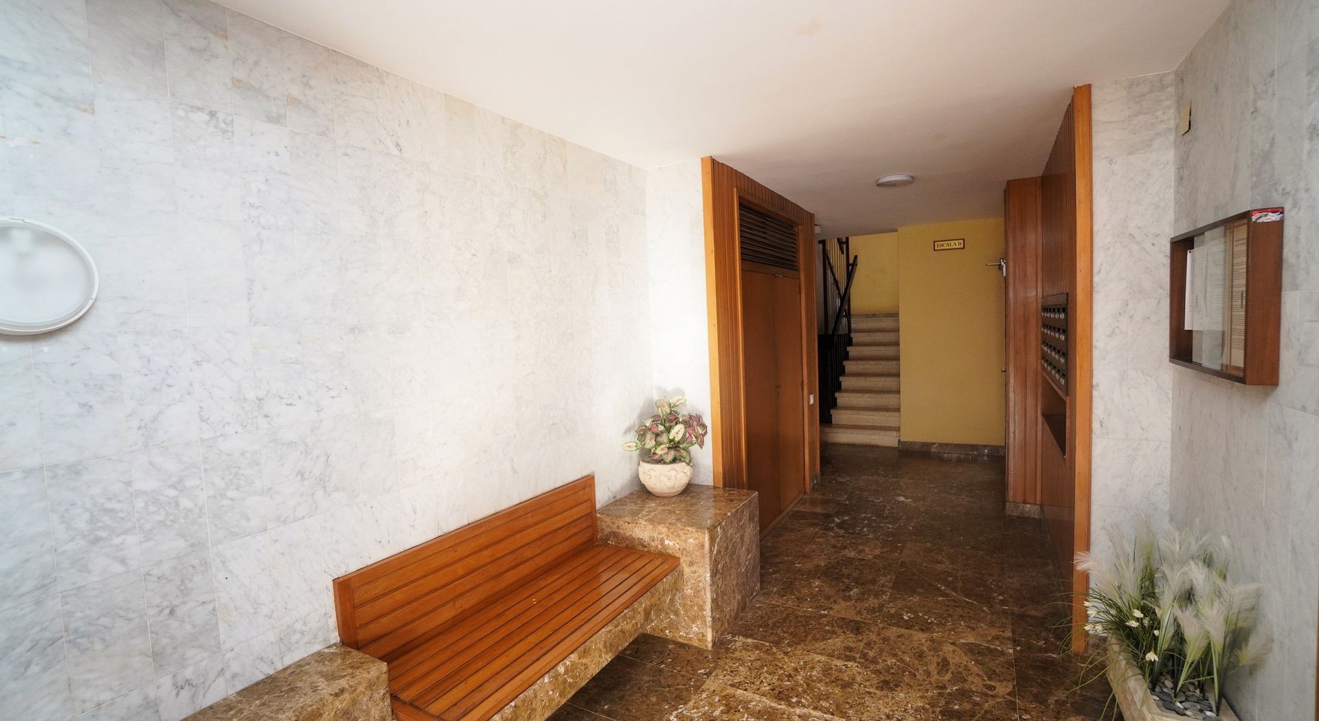 Orientación Sur y con 69 m2 que se distribuyen de la siguiente manera: recibidor, salón comedor, cocina independiente, dos habitaciones dobles con armarios empotrados y terraza a la que se accede desde el salón y desde la habitación principal. El edificio está en perfecto estado de conservación y en su amplia zona comunitaria se puede aparcar. Dispone de zona de duchas para cuando vengas de la playa. La finca no tiene ascensor.