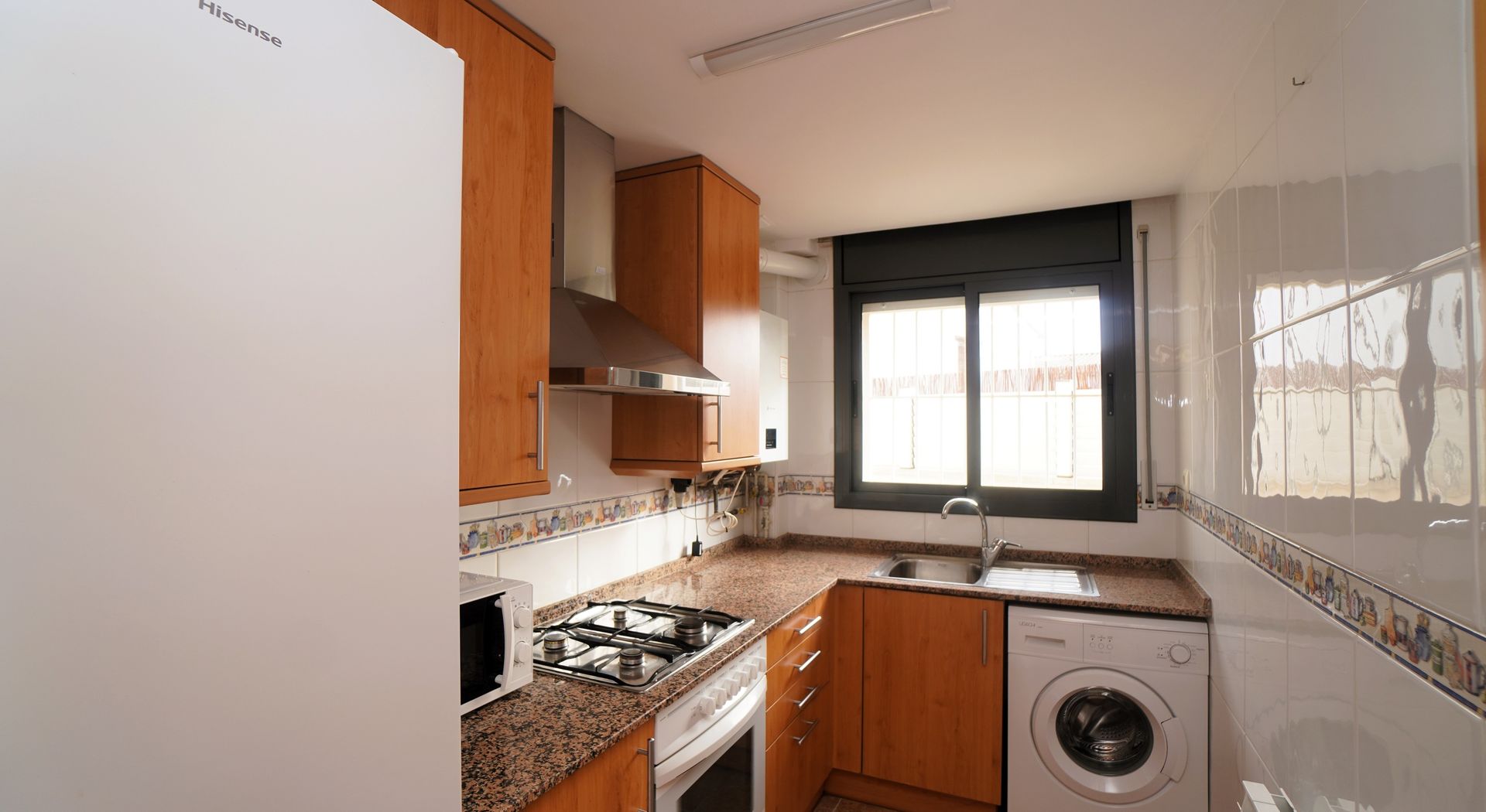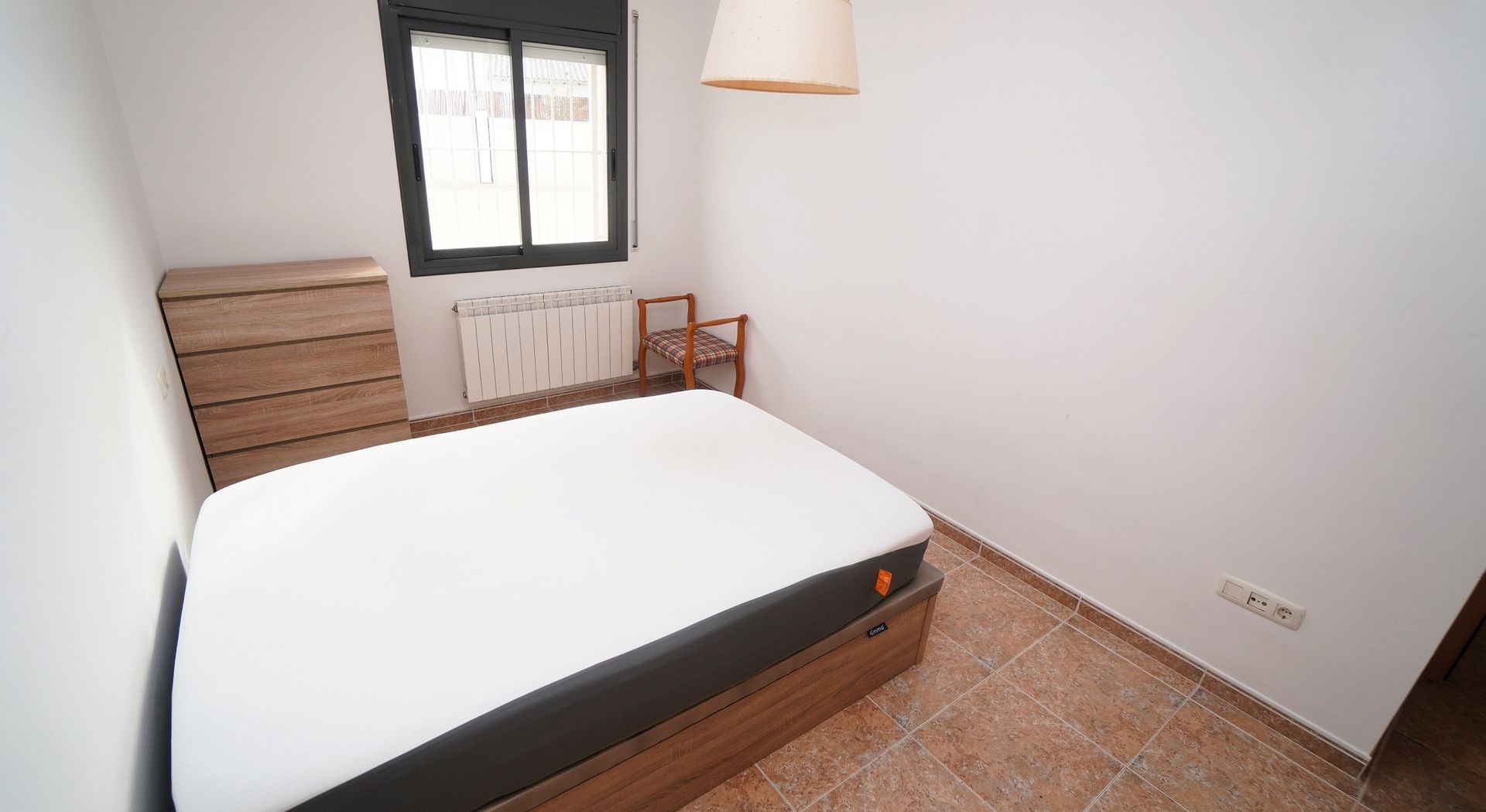 Se distribuye de la siguiente manera: recibidor, amplio salón comedor con salida a la terraza desde donde se accede directamente a la piscina, cocina independiente, baño con ducha y dos habitaciones dobles, una habitación con armario empotrado.